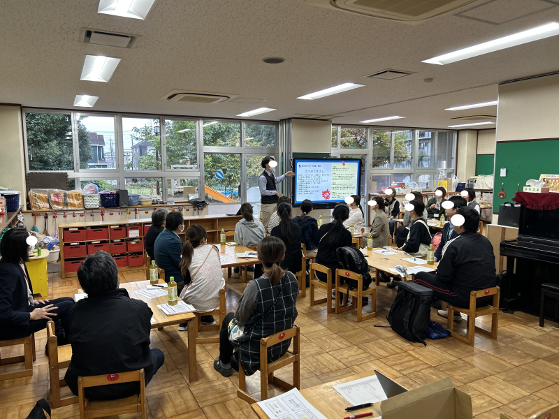 5日(水)は大和市の小学校教員の方が来園され、幼稚園の環境について学んでいただきました。