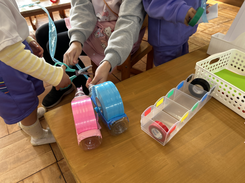 「見て!」と見せてくれたのは、スズランテープで作った三つ編み。