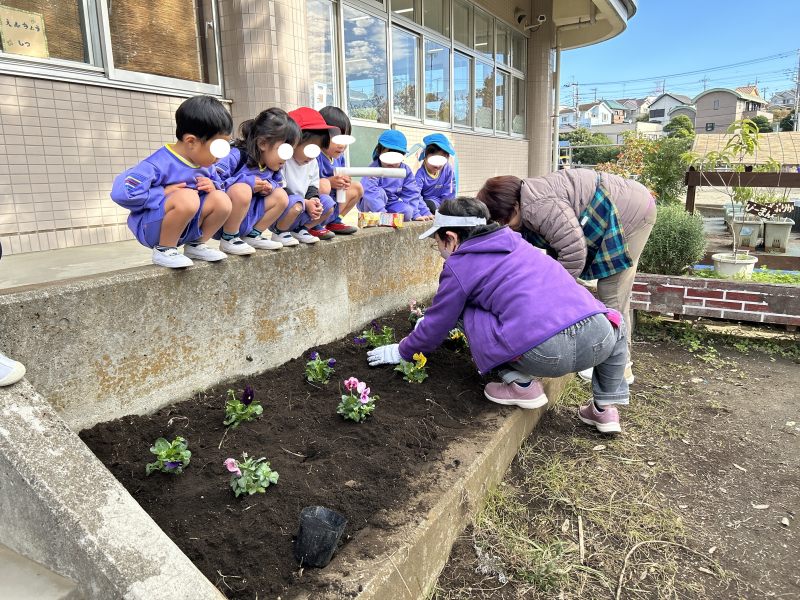 「なんのおはな?」「パンジーだよ」「大切に育ててね」「うん!いいよ!」