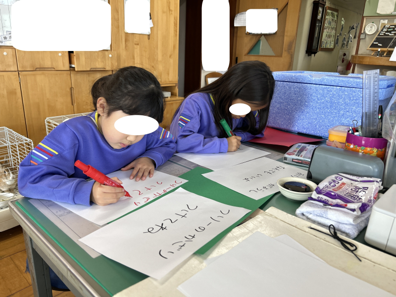 それを聞いた年長組のIちゃん、Nちゃんが「それわたし書く!」「わたしも!」と言ってくれたので、