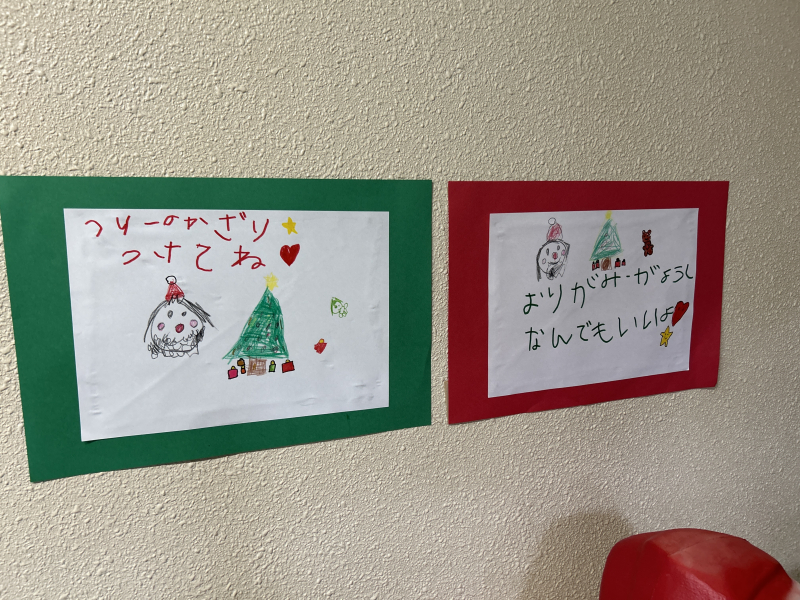 頂き物のツリーがもう1本あったので、そちらは何も飾りつけせず、当日まで子どもたちに飾りづくりを楽しんでもらおうと考えました。