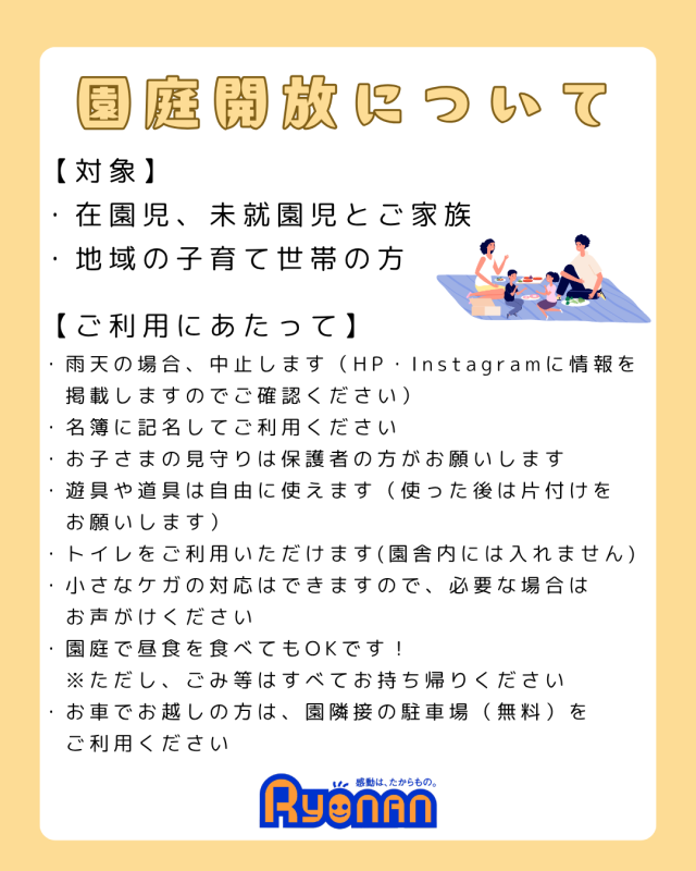 園庭開放のお知らせ